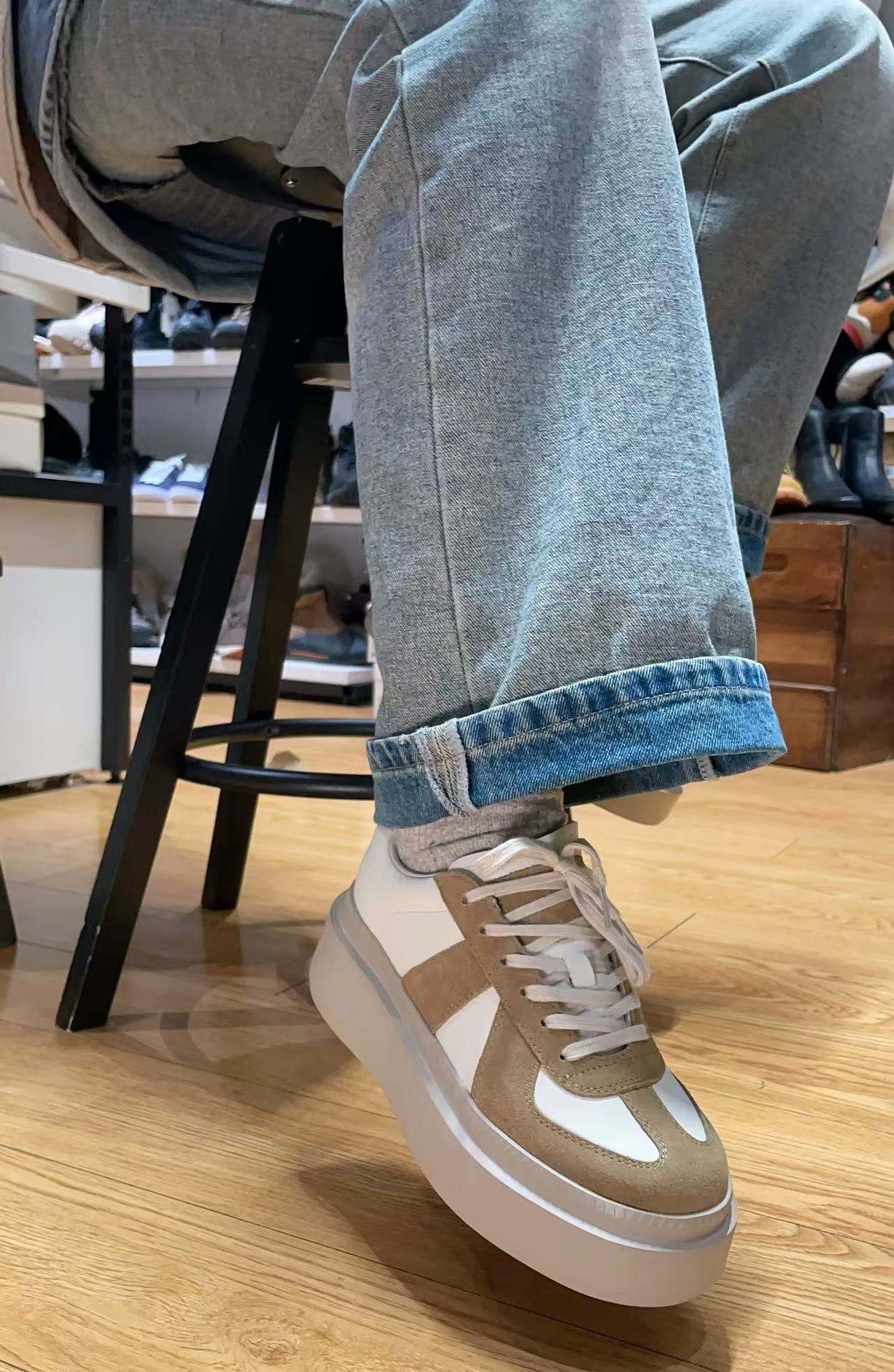 Women's casual shoes,Calfskin fabric,natural leather lining,4cmultra-light thick sole,very comfortablea and stretchy to walk in,Fashionable and charming ,makes your legs look longer.